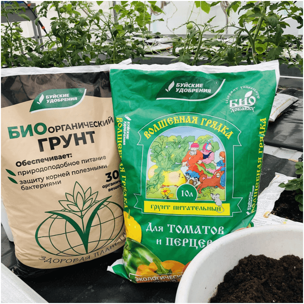 Всеми этими качествами обладают готовые торфогрунты «Буйского химического завода», для рассады можно использовать - «Волшебная грядка» универсальная или для томатов, перцев, грунт «Микропарник» или БИОорганический грунт без минеральных солей искусственного происхождения. Они представляют собой, сложнокомпонентную смесь и отлично подходят для проращивания семян.