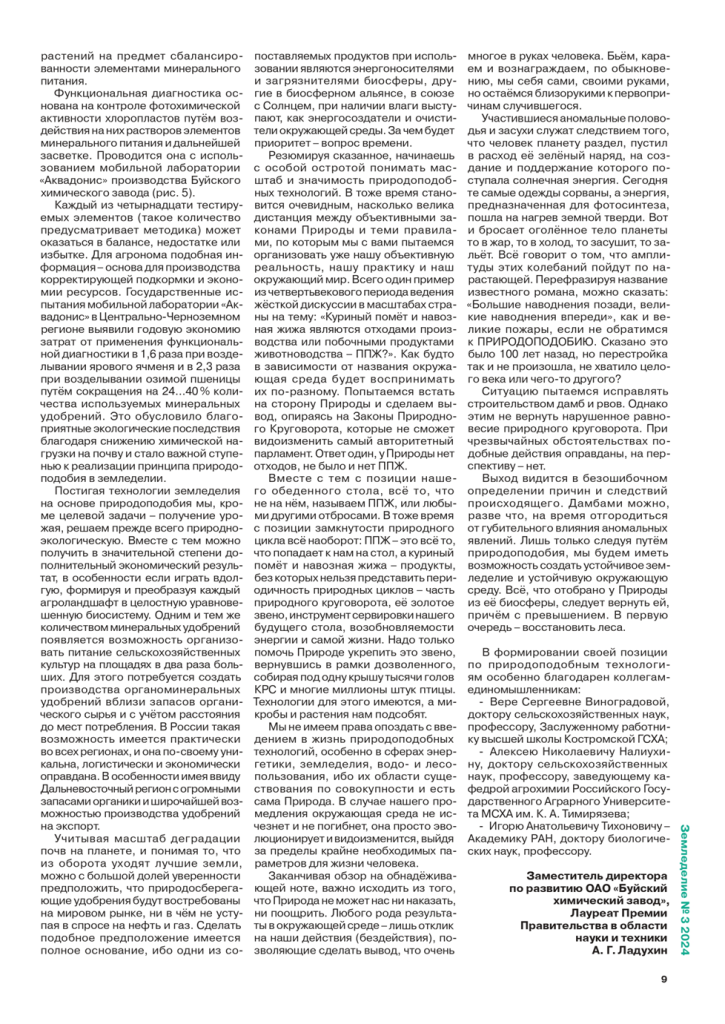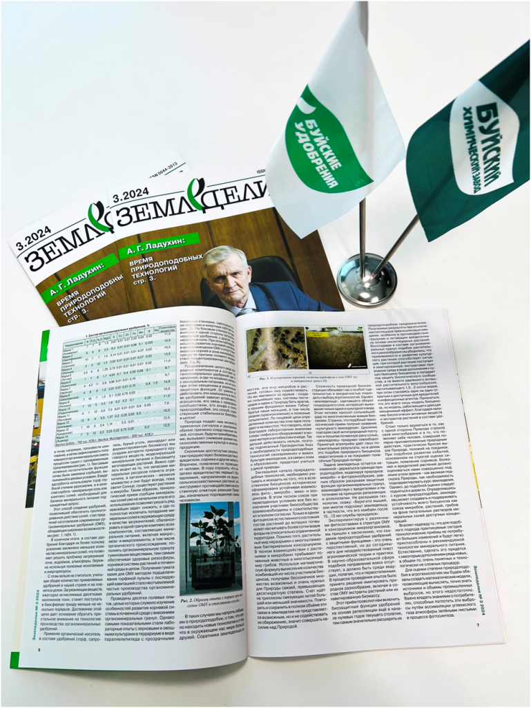 В №3 2024 г. ведущего аграрного журнала "Земледелие" опубликована статья Почётного гражданина города Буя, Почётного химика РФ, Лауреат Премии Правительства в области науки и техники, зам.директора Буйского химического завода Анатолия Георгиевича Ладухина.
