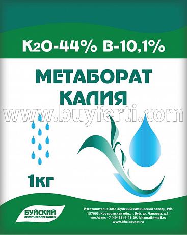 Potassium metaborate is designed for applications through the use of drip irrigation systems. This fertilizer is produced in a form of small-grained powder which fully dissolves in water 3 times quicker than borax and 20 times quicker than boric acid.