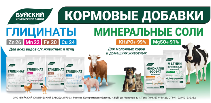 Так появился ассортимент кормовых добавок, которые ОАО «Буйский химический завод» начал производить с 2020 года, поставляя их отечественным животноводам.