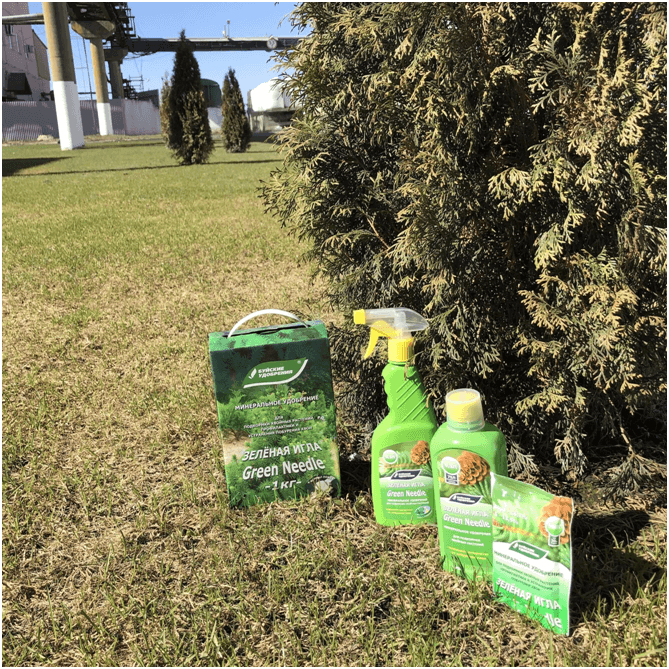 «Зеленая игла» 500 мл (спрей)– это готовый раствор, который предназначен для опрыскивания хвойных растений (некорневое питание). Норма расхода – до полного смачивания хвои, но стекать раствор на землю не должен. В зависимости от состояния хвойных растений, такие подкормки необходимо проводить не чаще одного раза в 2 недели.