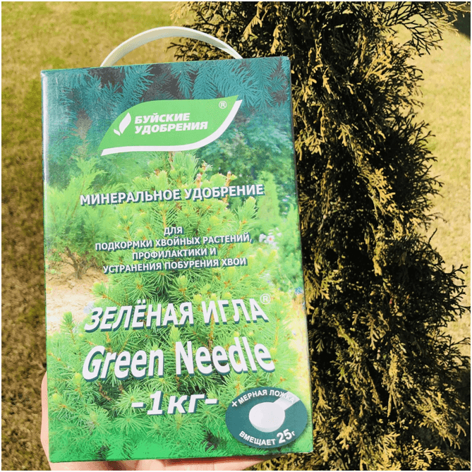 «Зеленая игла» 100 г. (пакет) – это кристаллический порошок, который предназначен для разведения в воде и последующего полива (корневое питание). 15-25 г на 10 л. воды и внесение так же по площади кроны в дозе 5-10 л на квадратный метр. Желательно в сухую землю жидкие подкормки не делать. На песчаных почвах и в засушливую погоду предварительно делается полив растения, а затем подкормка. Такую процедуру можно делать 3-4 раза за сезон, начиная с возобновления вегетации.